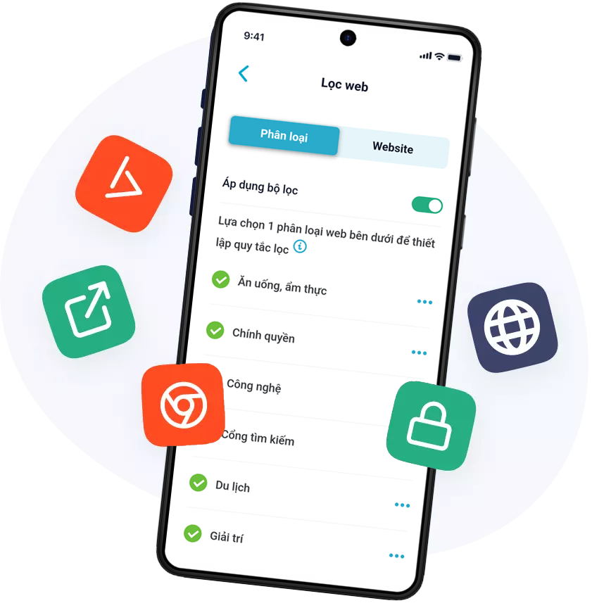 Hệ thống trí tuệ nhân tạo (AI) thông minh của Hakinet sẽ tự động phân tích và chặn các trang web có nội dung nhạy cảm, đồi trụy, cờ bạc, bạo lực… giúp cha mẹ yên tâm khi con lướt web mà không cần giám sát liên tục