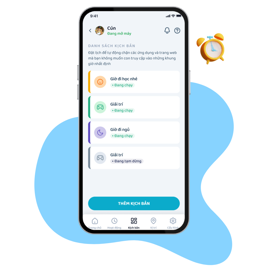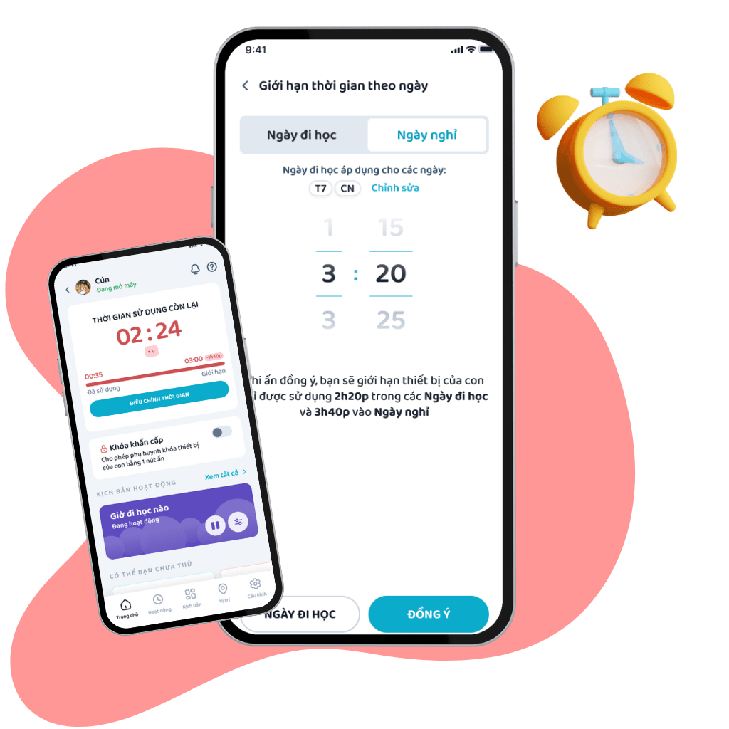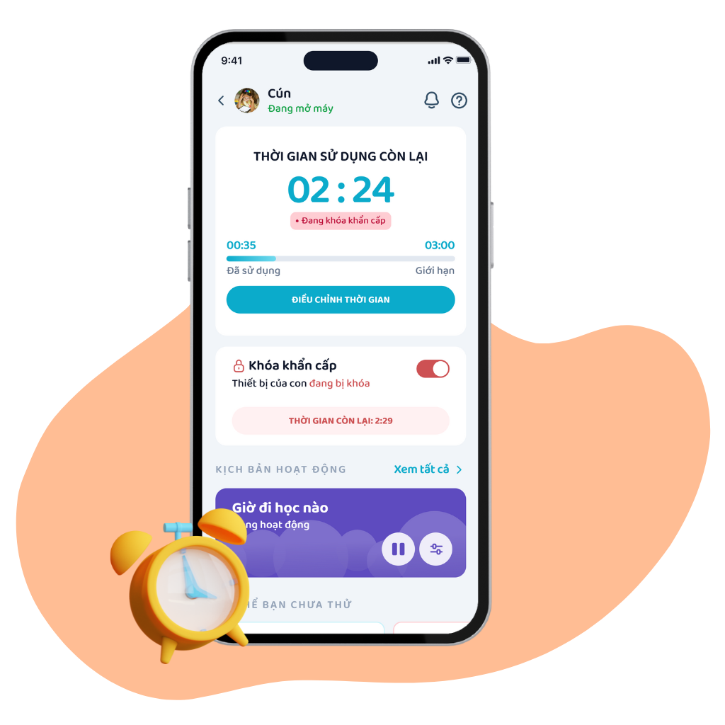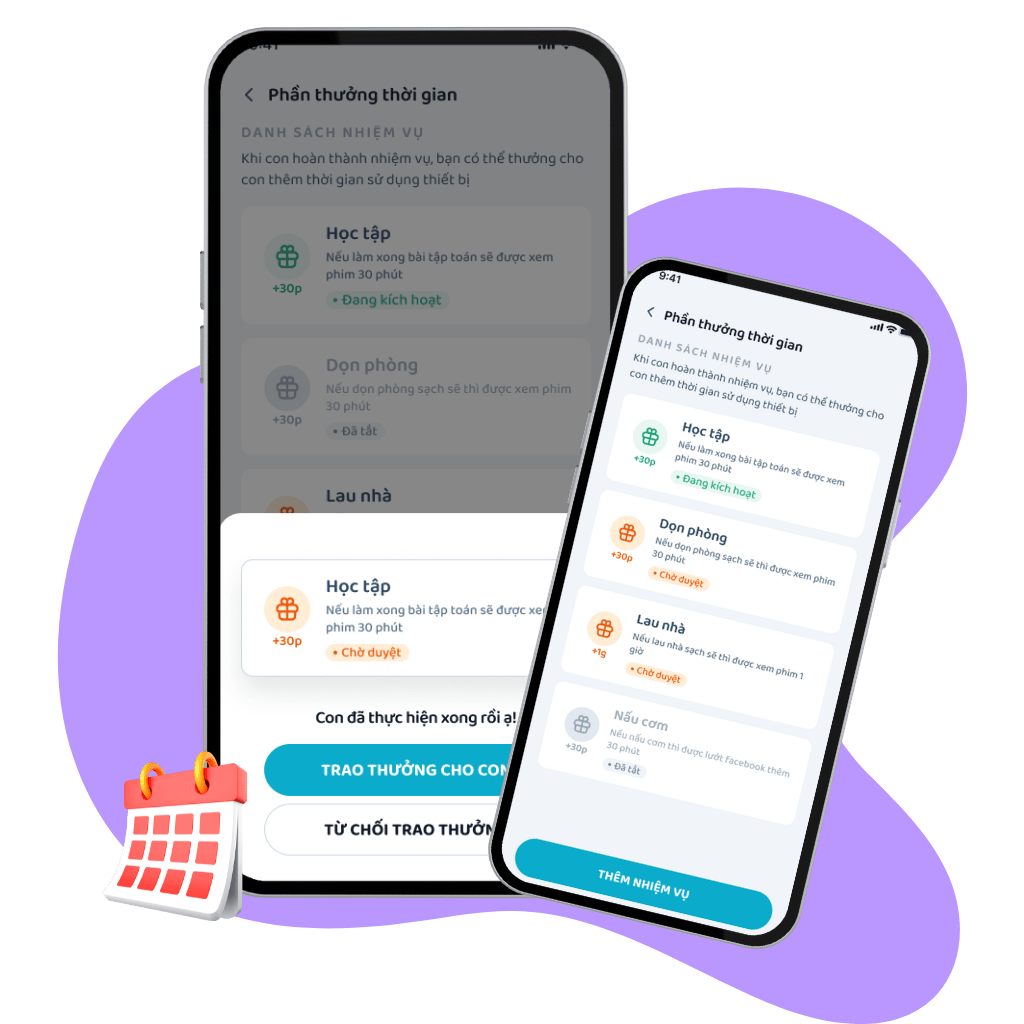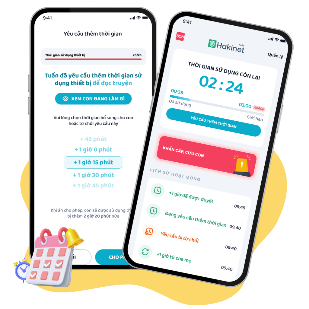 Hakinet giúp cha mẹ cùng con xây dựng thói quen lành mạnh: giờ học tập trung, giờ chơi thoải mái, giờ ngủ đúng giờ. Con có thể xin thêm thời gian khi cần, hoặc nhận phần thưởng xứng đáng sau khi hoàn thành nhiệm vụ được giao.